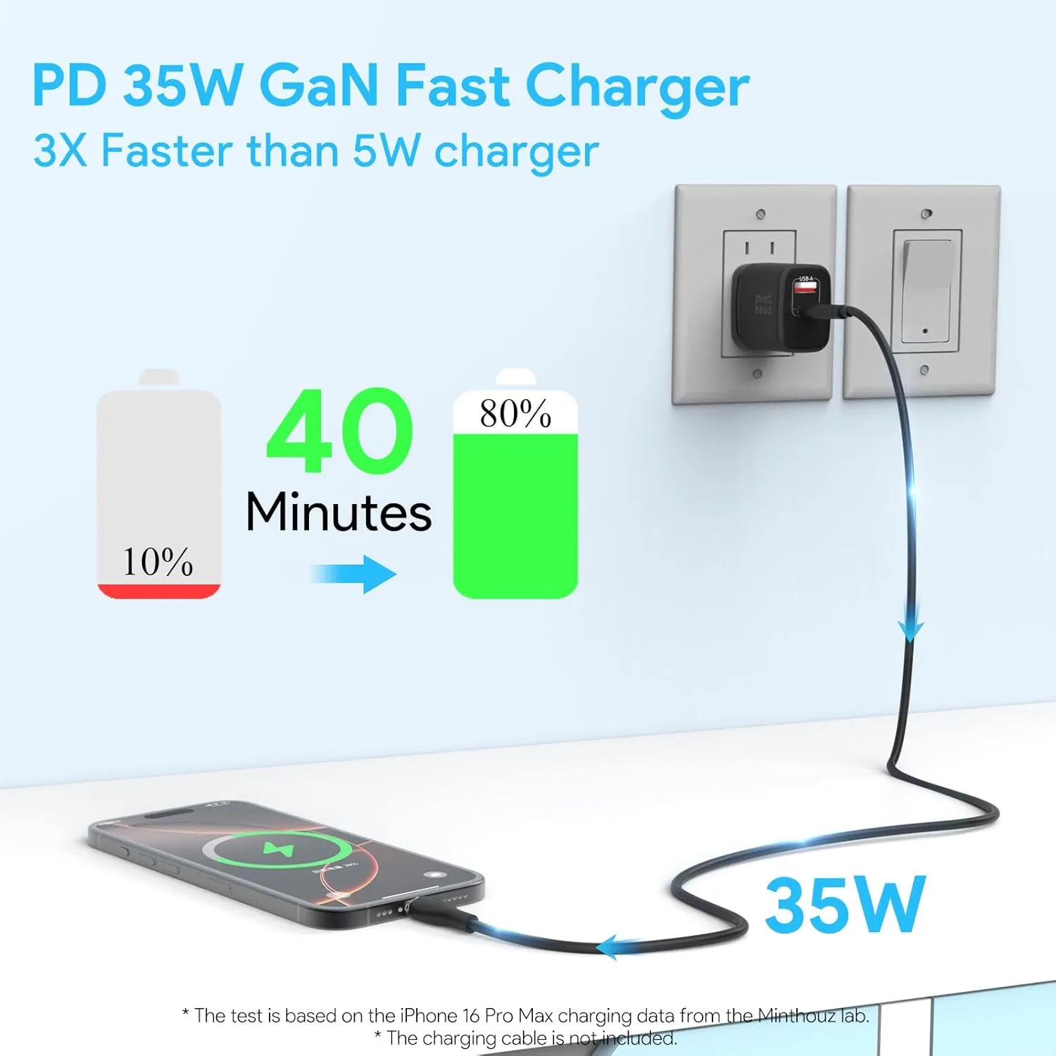 Minthouz 35W USB C Fast Charging Charger: MTRY-U35D-AC